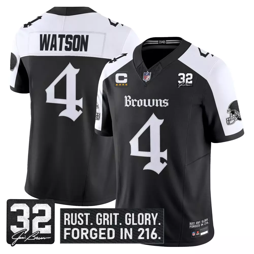 Watson 4 Cleveland Browns 2025 Black Stitched Jersey | Name Patch Style for Men | For Men, Women & Youth