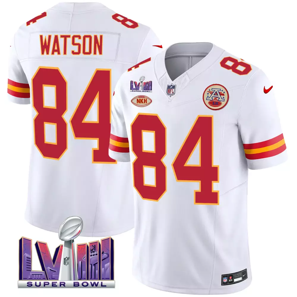 Watson 84 Kansas City Chiefs 2023 Stitched Vapor Jersey | Super Bowl Edition White | Limited Edition Fan Gear | For Men, Women & Youth