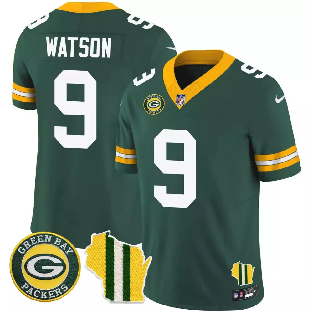 Watson 9 Green Bay Packers 2023 Men’s All Stitched Vapor Jersey | Gold Edition | Fan Gear for Men, Women & Youth;Watson 9 Green Bay Packers 2023 Men’s All Stitched Vapor Jersey | Green Color | Fan Gear for Men, Women & Youth;Watson 9 Green Bay Packers 2023 Men’s All Stitched Vapor Jersey | Green Wisconsin Patch | Fan Gear for Men, Women & Youth;Watson 9 Green Bay Packers 2023 Men’s All Stitched Vapor Jersey | Green Wisconsin Patch | Fan Gear for Men, Women & Youth;Watson 9 Green Bay Packers 2023 Men’s All Stitched Vapor Jersey | Olive Green Salute to Service | Fan Gear for Men, Women & Youth