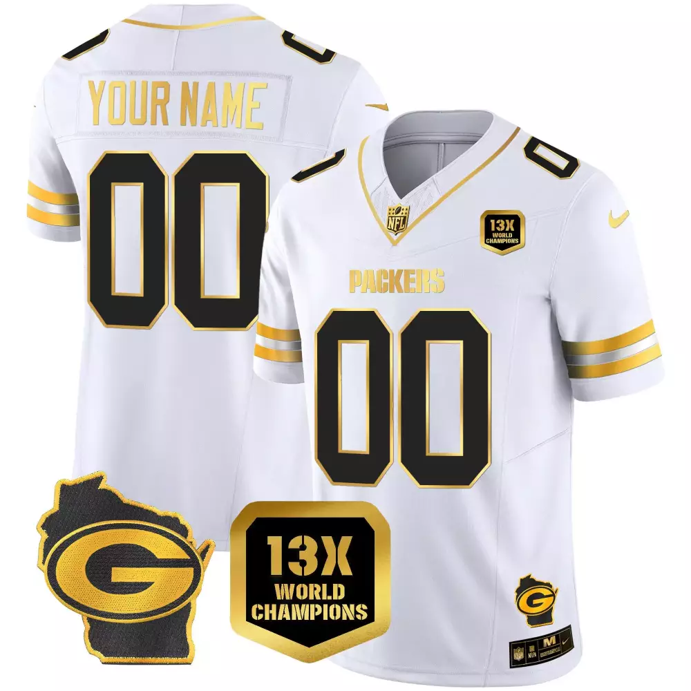 White 92 Green Bay Packers Women’s Stitched Jersey | 1919 Grit Frozen Steel Edition | Perfect Fan Gear | For Men, Women & Youth;White Gold Men’s Green Bay Packers 100th Season Home Patch Gold Vapor Limited Custom Jersey | All Stitched Fan Gear | For Men;White Gold Men’s Green Bay Packers 13 Time World Champions Home Patch Gold Vapor Custom Jersey | All Stitched Fan Gear | For Men;White Gold Men’s Green Bay Packers 13 Time World Champions Home Patch Gold Vapor Jersey V2 | All Stitched Fan Gear | For Men;White Gold Men’s Green Bay Packers Gold Est 1919 Patch Custom Name Number Jersey | All Stitched Fan Gear | For Men