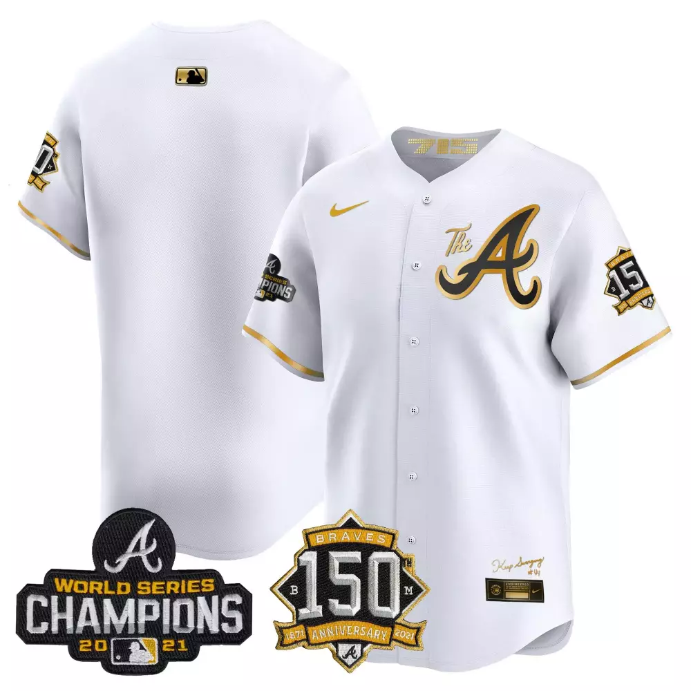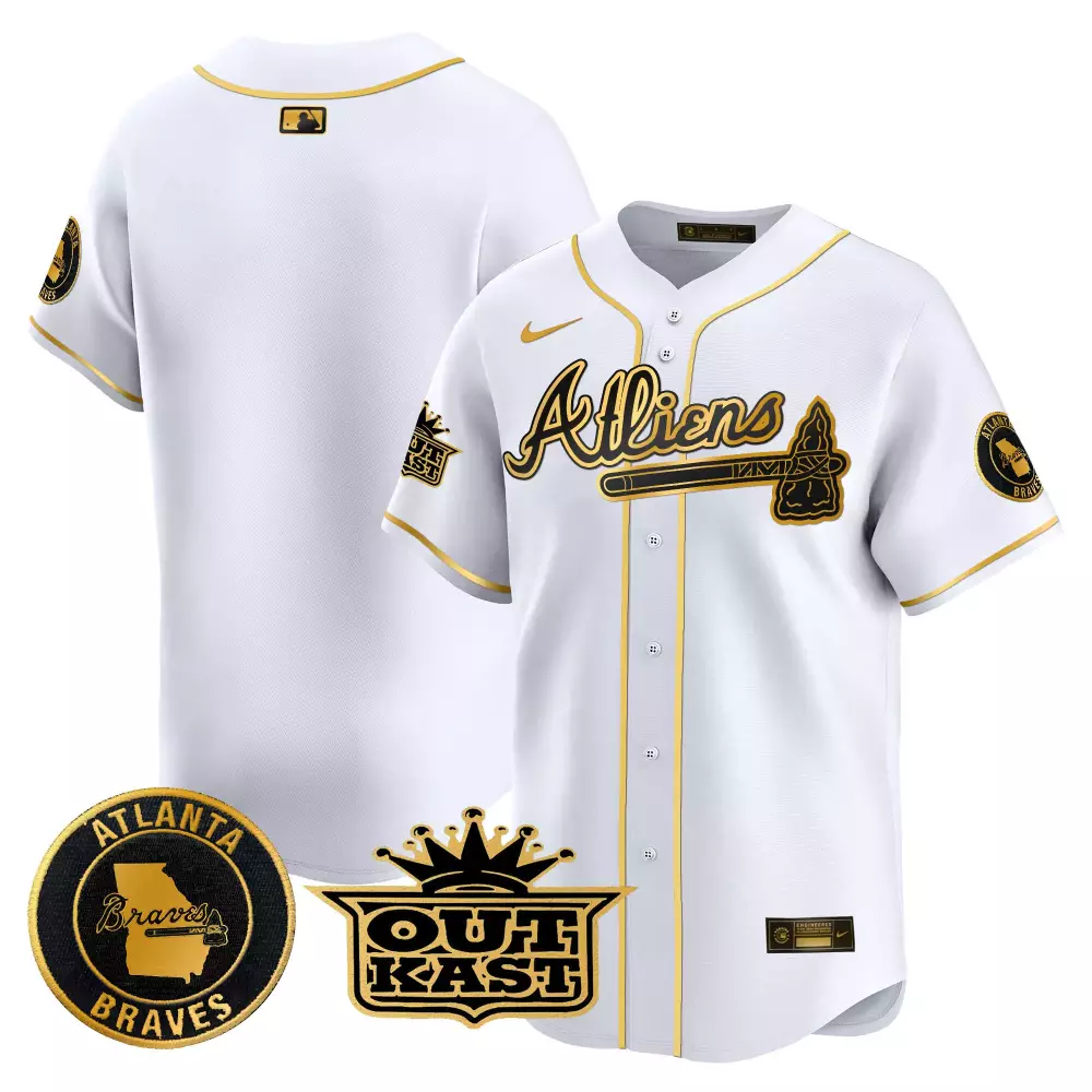White & Gold Atlanta Braves ATLiens Vapor Premier Elite Jersey | All Stitched Fan Gear | For Men, Women & Youth;White & Gold Atlanta Braves ATLiens Vapor Premier Limited Jersey | All Stitched Fan Gear | For Men, Women & Youth;White & Gold Atlanta Braves ATLiens Vapor Premier Limited Jersey V2 | All Stitched Fan Gear | For Men, Women & Youth;White & Gold Atlanta Braves Blooper Patch Vapor Premier Limited Jersey | All Stitched Fan Gear | For Men, Women & Youth;White & Gold Atlanta Braves Champions 150th Patch Vapor Premier Limited Jersey | All Stitched Fan Gear | For Men, Women & Youth