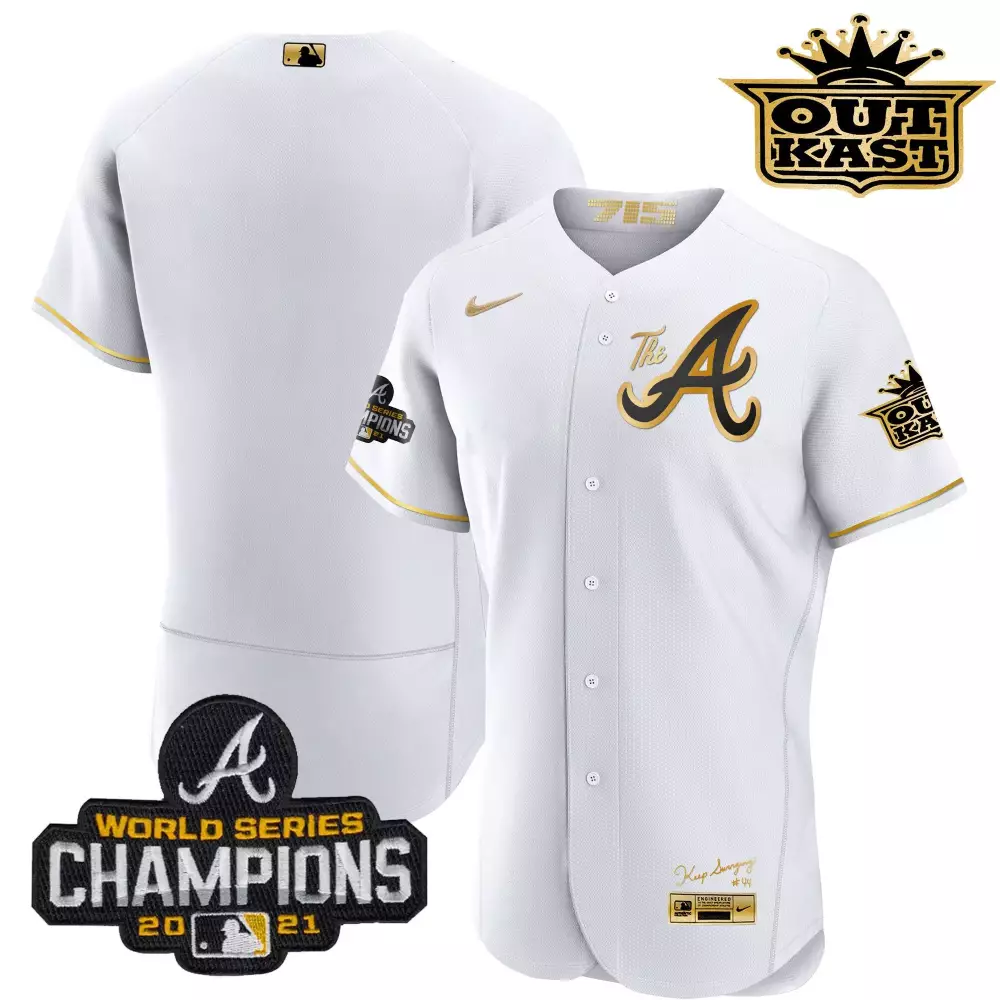 White & Gold Atlanta Braves Outkast Gold The A Cool Base Jersey | All Stitched Fan Gear | For Men, Women & Youth