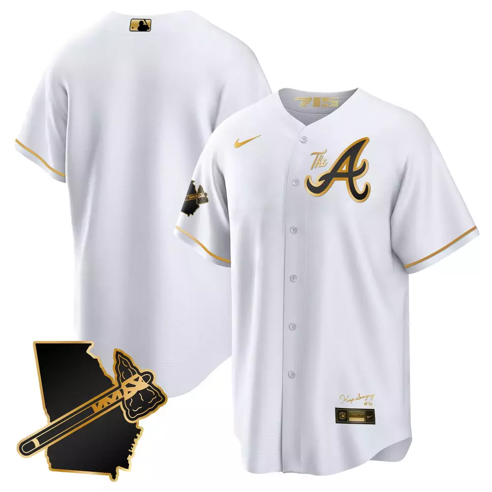 White & Gold Atlanta Braves Outkast Gold The A Cool Base Jersey | All Stitched Fan Gear | For Men, Women & Youth;White & Gold Atlanta Braves Outkast Gold The A Flex Base Jersey | All Stitched Fan Gear | For Men, Women & Youth;White & Gold Atlanta Braves Peaches N Cream Vapor Premier Limited Jersey | All Stitched Fan Gear | For Men, Women & Youth;White & Gold Atlanta Braves The A Gold Cool Base Jersey Georgia Patch | All Stitched Fan Gear | For Men, Women & Youth;White & Gold Atlanta Braves The A Gold Flag Cool Base Jersey | All Stitched Fan Gear | For Men, Women & Youth