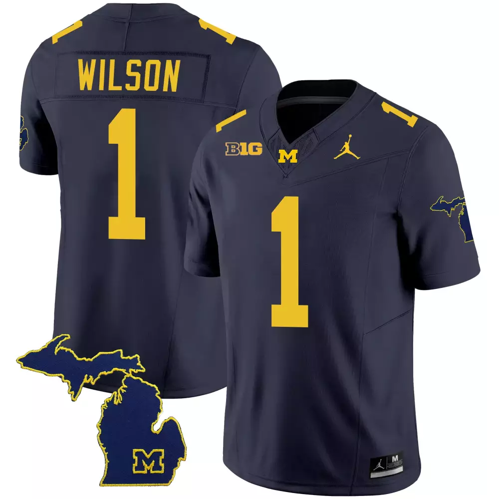 Wilson 1 Men’s Navy Michigan Wolverines Jersey | All Stitched with Name Patch | Fan Gear for Game Day | For Men, Women & Youth