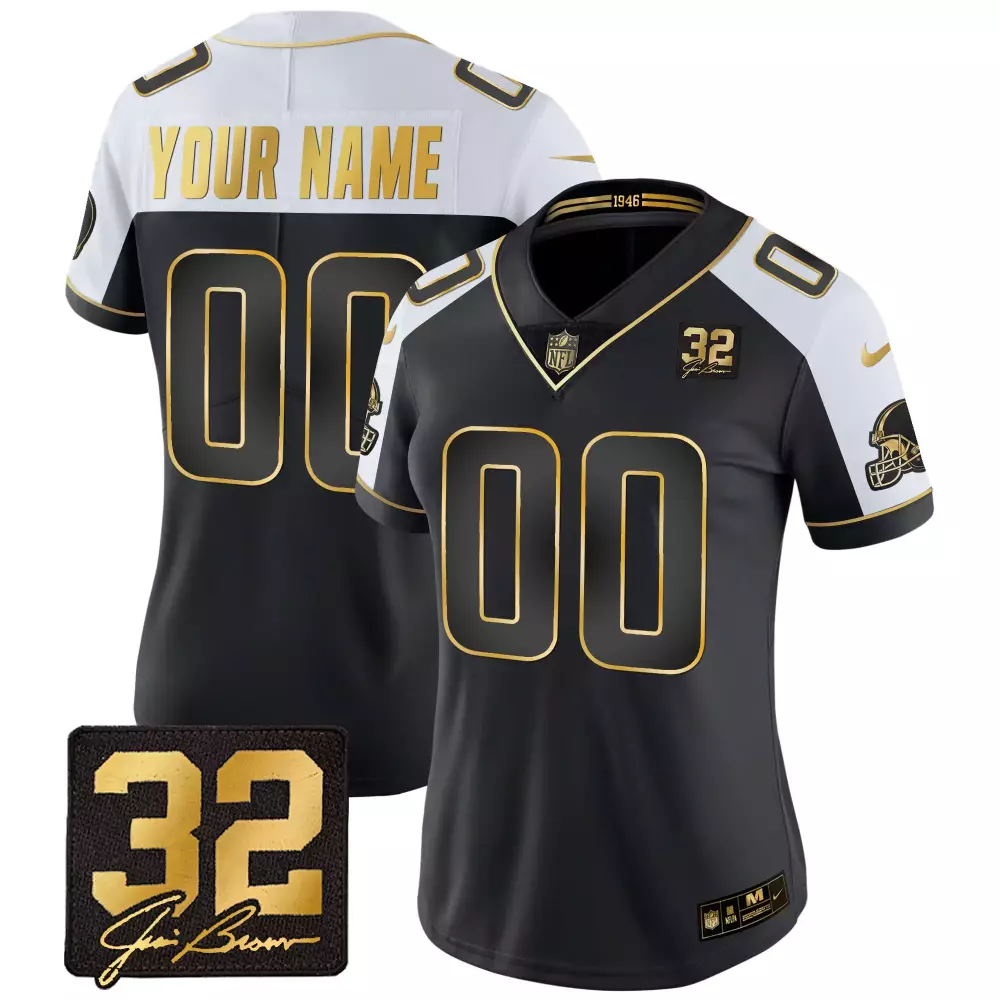 Women’s Black Custom Jersey | Name Patch 32 Jim Brown | NFL Stitched 2023 | For Women, Men & You