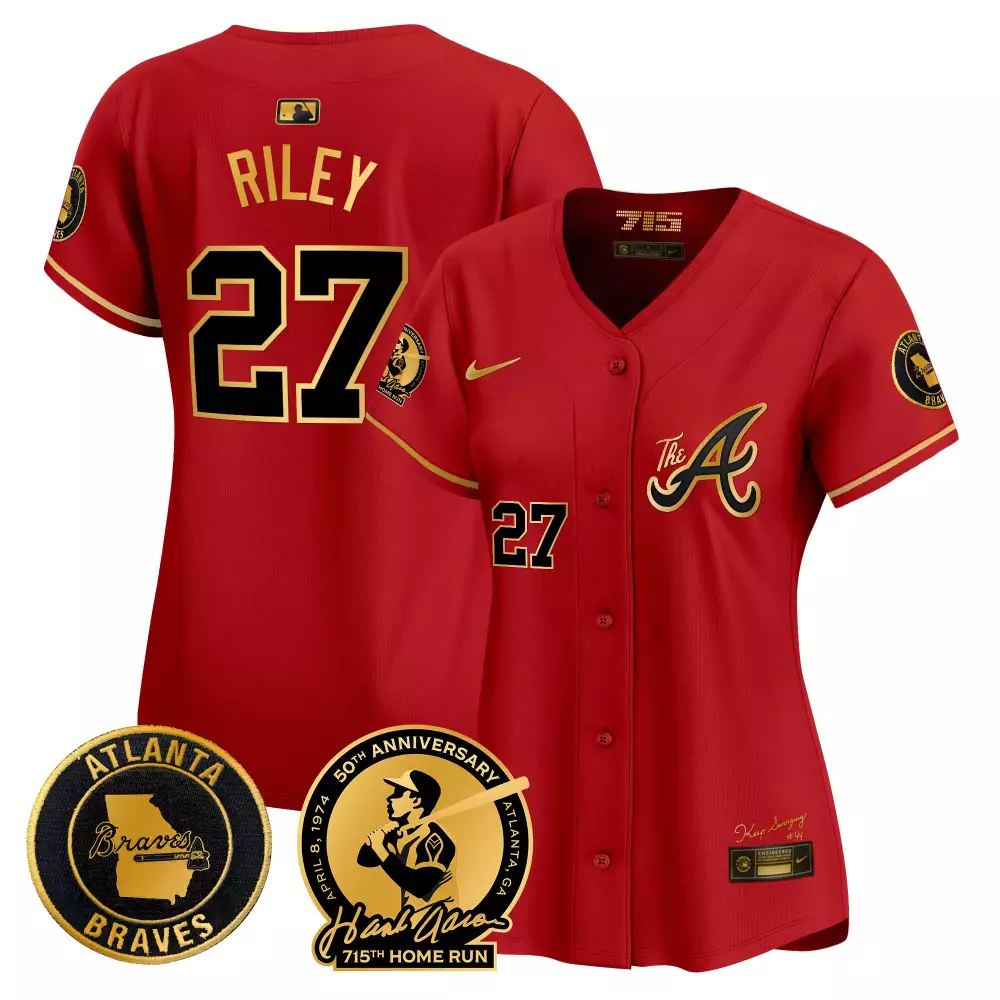 Women’s Ozzie Albies 1 Atlanta Braves Jersey | Stitched Black Vapor Fan Gear | For Women & Youth;Women’s Player Name Atlanta Braves Jersey | Stitched Blue Stars & Stripes Patch Vapor Fan Gear | For Women & Youth;Women’s Red Atlanta Braves Jersey Riley 27 715th Home Run Patch | Limited Edition Stitched Fan Gear | For Women;Women’s Red Atlanta Braves Ronald Acuña Jr. 13 715th Home Run Patch Jersey | Stitched Fan Gear | For Wome;Women’s Red Atlanta Braves Strider 99 715th Home Run Patch Jersey | Stitched Fan Gear | For Women