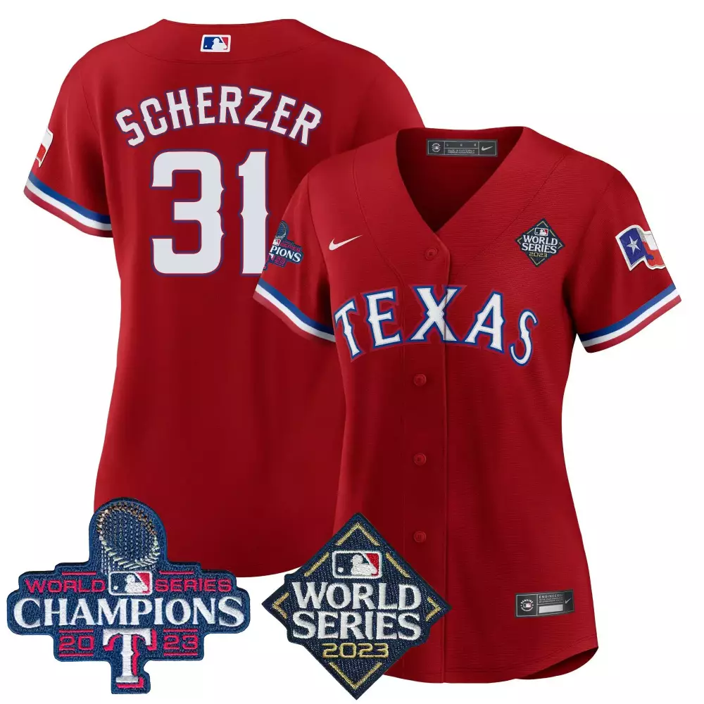 Women’s Red Texas Rangers Jersey Lowe 30 All Stitched Vapor 2023 | Fan Gear | For Women;Women’s Red Texas Rangers Jersey Ryan 34 All Stitched Vapor 2023 Mexican Theme | Fan Gear | For Women;Women’s Red Texas Rangers Jersey Seager 5 All Stitched Vapor 2023 Mexican Design | Fan Gear | For Women;Women’s Red Texas Rangers Max Scherzer 31 2023 World Series Champions All Stitched Vapor Jersey | Fan Gear | For Women;Women’s Red Texas Rangers Semien 2 All Stitched Vapor Jersey 2023 Edition | Fan Gear | For Women