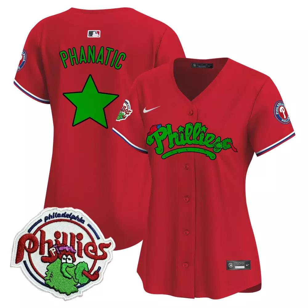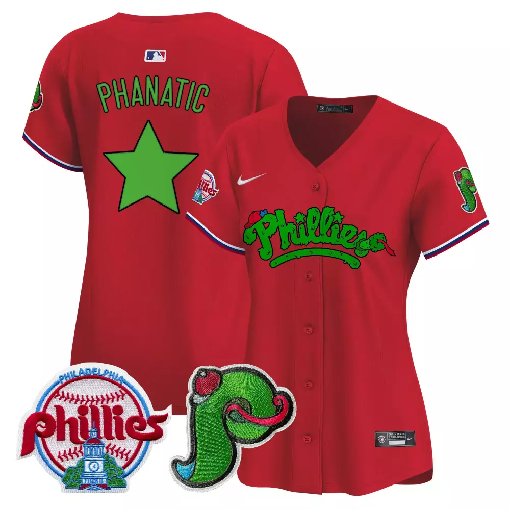 Womens Phanatic Red Philadelphia Phillies Phanatic Patch Vapor Premier Jersey | All Stitched | Fan Gear for Women & Youth;Womens Phanatic Red Philadelphia Phillies Phanatic Patch Vapor Premier Jersey V2 | All Stitched | Game Day Outfit for Women & Youth;Womens Phanatic Red Philadelphia Phillies Phanatic Patch Vapor Premier Jersey V3 | All Stitched | Perfect Gift Idea for Women & Youth;Womens Phanatic Red Philadelphia Phillies Phanatic Patch Vapor Premier Jersey V4 | All Stitched | Fan Gear for Women & Youth;Womens Phanatic Stitched Vapor Jersey 2023 Philadelphia Phillies Cream Graffiti Edition | Stylish Fan Gear for Women