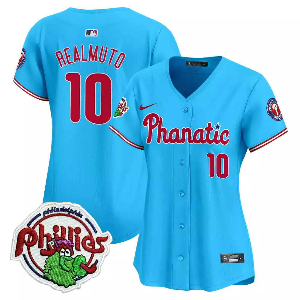 Womens Phanatic Vapor Jersey Philadelphia Phillies Cream | Stitched 2023 One for the History Books | Fan Gear for Women;Womens Realmuto Philadelphia Phillies Light Blue Bubblegum Pink Jersey | Vapor Premier Limited Edition | Fan Gear for Women & Youth;Womens Realmuto Philadelphia Phillies Light Blue Bubblegum Pink Jersey V2 | Vapor Premier Limited Edition | Fan Gear for Women & Youth;Womens Realmuto Philadelphia Phillies Light Blue Phanatic Patch Jersey | Vapor Premier Limited Edition | Fan Gear for Women & Youth;Womens Realmuto Philadelphia Phillies Light Blue Phanatic Patch Jersey V2 | Vapor Premier Limited Edition | Fan Gear for Women & Youth