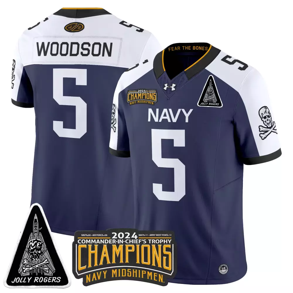 Woodson 5 Navy Midshipmen 2024 Vapor Jersey | Jolly Rogers Patch Tan | For Men, Women & Youth;Woodson 5 Navy Midshipmen 2024 Vapor Jersey | Jolly Rogers VF-84 Patch | For Men, Women & Youth;Woodson 5 Navy Midshipmen 2024 Vapor Jersey | Jolly Rogers VF-84 Patch Stitched | For Men, Women & Youth;Woodson 5 Navy Midshipmen 2024 Vapor Jersey | White Stitched Jolly Rogers Patch | For Men, Women & Youth;Woodson 5 Navy Midshipmen Stitched Jersey | 2024 Jolly Rogers Champions | For Men, Women & Youth