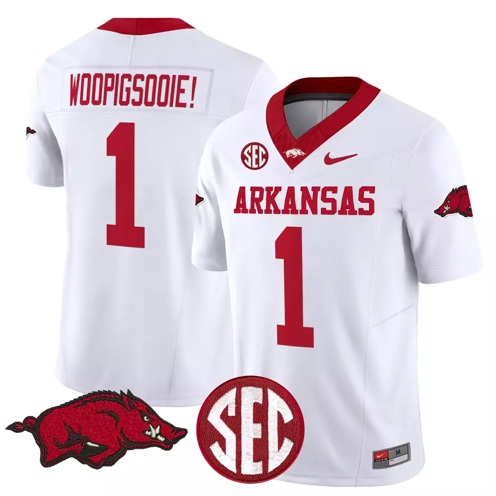 Woopigsooie 1 Arkansas Razorbacks 2023 Red Vapor Jersey | Men’s All Stitched SEC Patch | Fan Gear for Men, Women & You;Woopigsooie 1 Arkansas Razorbacks 2023 Red Vapor Jersey | Men’s All Stitched Style | Fan Gear for Men, Women & You;Woopigsooie 1 Arkansas Razorbacks 2023 White SEC Edition Jersey | Women’s Stitched Style | Fan Gear for Men, Women & You;Woopigsooie 1 Arkansas Razorbacks 2025 Red SEC Patch Jersey | Men’s Stitched Style | Fan Gear for Men, Women & You;Your Name 00 Arkansas Razorbacks 2023 Stitched Vapor Jersey | Black Edition | For Men, Women & Youth