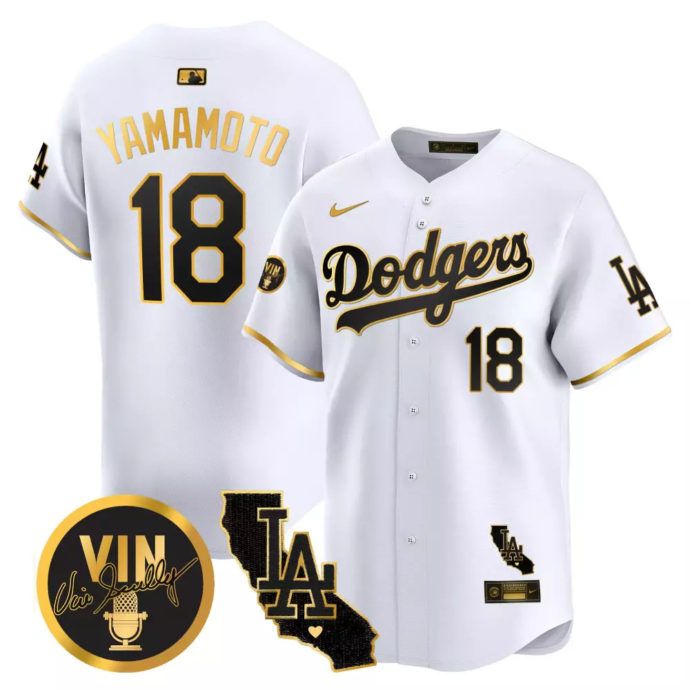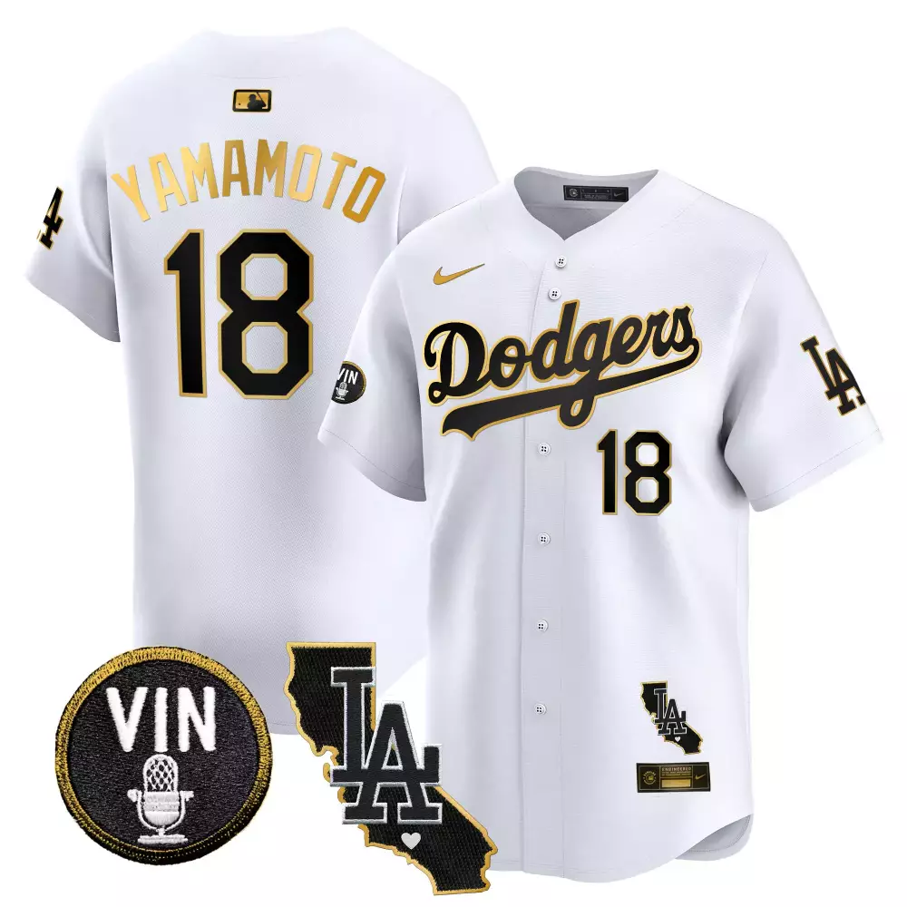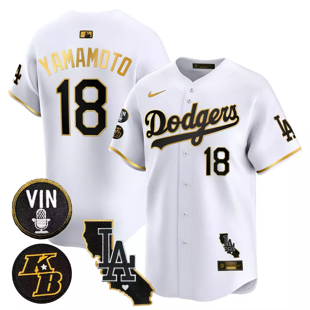 Yamamoto Men’s Black Gold Jersey | Los Angeles Dodgers 2024 Jackie Robinson Breaking Barriers Patch | Stitched Fan Gear for Men, Women & Youth;Yamamoto Men’s Black Jersey | Los Angeles Dodgers 2024 City Style | Stitched Fan Gear for Men, Women & Youth;Yamamoto Vin California Patch Gold Trim Vapor Premier Jersey | White Gold Los Angeles Dodgers Men’s Jersey | Limited Edition Fan Gear | For Men, Women & Youth;Yamamoto Vin California Patch Gold Vapor Premier Jersey | White Gold Los Angeles Dodgers Men’s Jersey | Limited Edition Fan Gear | For Men, Women & Youth;Yamamoto Vin Kobe Patch Gold Trim Vapor Premier Jersey V2 | White Gold Los Angeles Dodgers Men’s Jersey | Limited Edition Fan Gear | For Men, Women & Youth