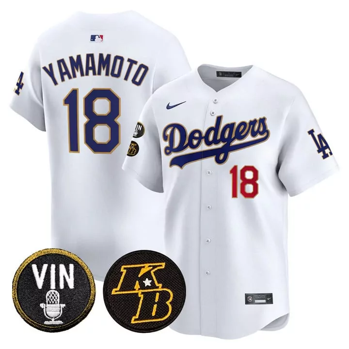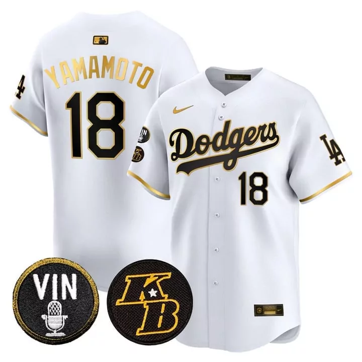 Yamamoto Men’s White Dodgers 2024 Jackie Robinson Patch Vapor Premier Jersey | Limited Edition Fan Gear | For Men, Women & Youth;Yamamoto Men’s White Dodgers Vin Kobe Gold Trim Vapor Premier Jersey | Limited Edition Fan Gear | For Men, Women & Youth;Yamamoto Men’s White Gold Dodgers 2024 Jackie Robinson Patch Jersey | Vapor Premier Limited Edition | For Men, Women & Youth;Yamamoto Men’s White Gold Dodgers Vin Kobe Patch Jersey | Gold Trim Vapor Premier Limited Edition | For Men, Women & Youth;Yamamoto Mexican Heritage Night Men’s Dodgers Mexico Fernando Memorial Jersey | Limited Edition Vapor Premier | Fan Gear for All | For Men, Women & Youth