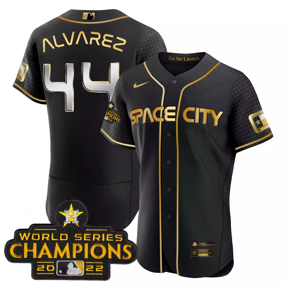 Yordan Alvarez Black Gold Astros Space City 713 Jersey | Limited Edition Vapor Premier | Fan Gear for Men, Women & Youth;Yordan Alvarez Black Gold Youth Astros 2023 Space City Champions Jersey | Limited Edition Vapor Premier | Fan Gear for Youth;Yordan Alvarez Cream Women’s Astros Bubblegum Pink Vapor Premier Jersey | Limited Edition Stitched Fan Gear | For Men, Women & Youth;Yordan Alvarez Cream Women’s Astros Cactus Jack Patch Vapor Premier Jersey | Limited Edition Stitched Fan Gear | For Men, Women & Youth;Yordan Alvarez Cream Women’s Astros Halloween Vapor Premier Jersey | Limited Edition Stitched Fan Gear | For Men, Women & Youth