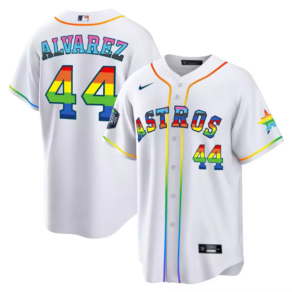 Yordan Alvarez Houston Astros 2023 Orbit Patch Vapor Premier Limited Jersey V2 for Youth | Stitched Green | Fan Gear for Men, Women & Youth;Yordan Alvarez Houston Astros 2023 Orbit Patch Vapor Premier Limited Jersey V3 | Stitched Green | Fan Gear for Men, Women & Youth;Yordan Alvarez Houston Astros 2023 Orbit Patch Vapor Premier Limited Jersey V3 | Stitched Green | Fan Gear for Women | For Men, Women & Youth;Yordan Alvarez Houston Astros 2023 Pride Cool Base Jersey | White Stitched | Fan Gear for Men;Yordan Alvarez Houston Astros 2023 Pride Flex Base Jersey | White Stitched | Fan Gear for Men