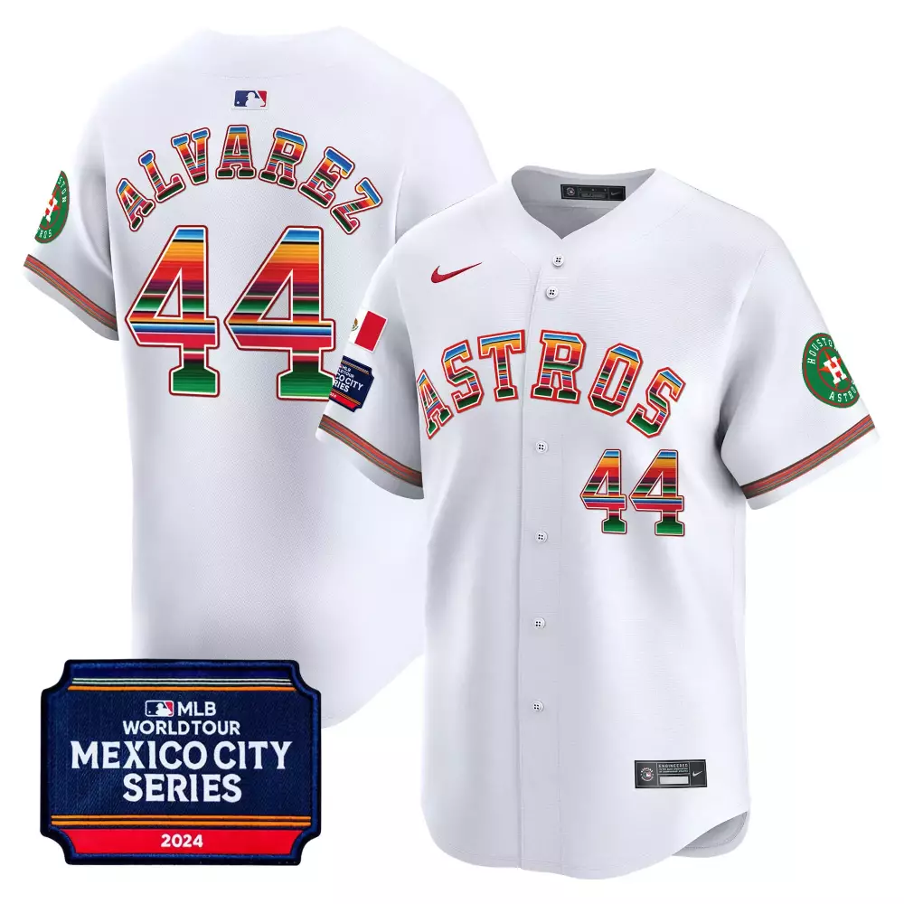Yordan Alvarez Houston Astros 2024 Mexico City Series Patch Black Jersey | Limited Edition Stitched Fan Gear | For Men, Women & Youth;Yordan Alvarez Houston Astros 2024 Mexico City Series Patch Jersey | Stitched Vapor Premier Limited Edition | Fan Gear | For Men, Women & Youth;Yordan Alvarez Houston Astros 2024 Mexico City Series Patch Limited Edition Jersey | White Stitched | Fan Gear for Men;Yordan Alvarez Houston Astros 2024 Mexico City Series Patch Vapor Premier Limited Jersey | Flex Green Men’s Style | Stitched Fan Gear | For Men, Women & Youth;Yordan Alvarez Houston Astros 2024 Navy Ready 2 Reign Cool Base Jersey | Men’s Style | Replica Fan Gear for Men, Women & Youth