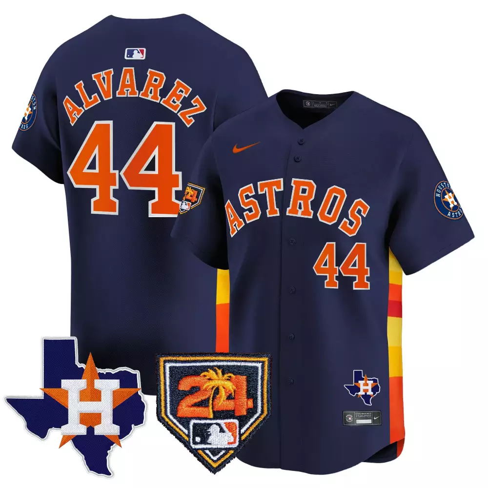 Yordan Alvarez Houston Astros 2024 Navy Ready 2 Reign Flex Base Jersey | Men’s Style | Fan Gear for Men, Women & Youth;Yordan Alvarez Houston Astros 2024 Navy Robinson Texas Patch Vapor Premier Jersey | Limited Edition | Fan Gear for Men, Women & Youth;Yordan Alvarez Houston Astros 2024 Navy Space City Htown Vapor Premier Jersey | Limited Edition | Fan Gear for Men, Women & Youth;Yordan Alvarez Houston Astros 2024 Navy Spring Training Texas Patch Vapor Premier Jersey | Limited Edition | Fan Gear for Men, Women & Youth;Yordan Alvarez Houston Astros 2024 Navy Stitched Jersey | Men’s Style with Name Patch | Fan Gear | For Men, Women & Youth