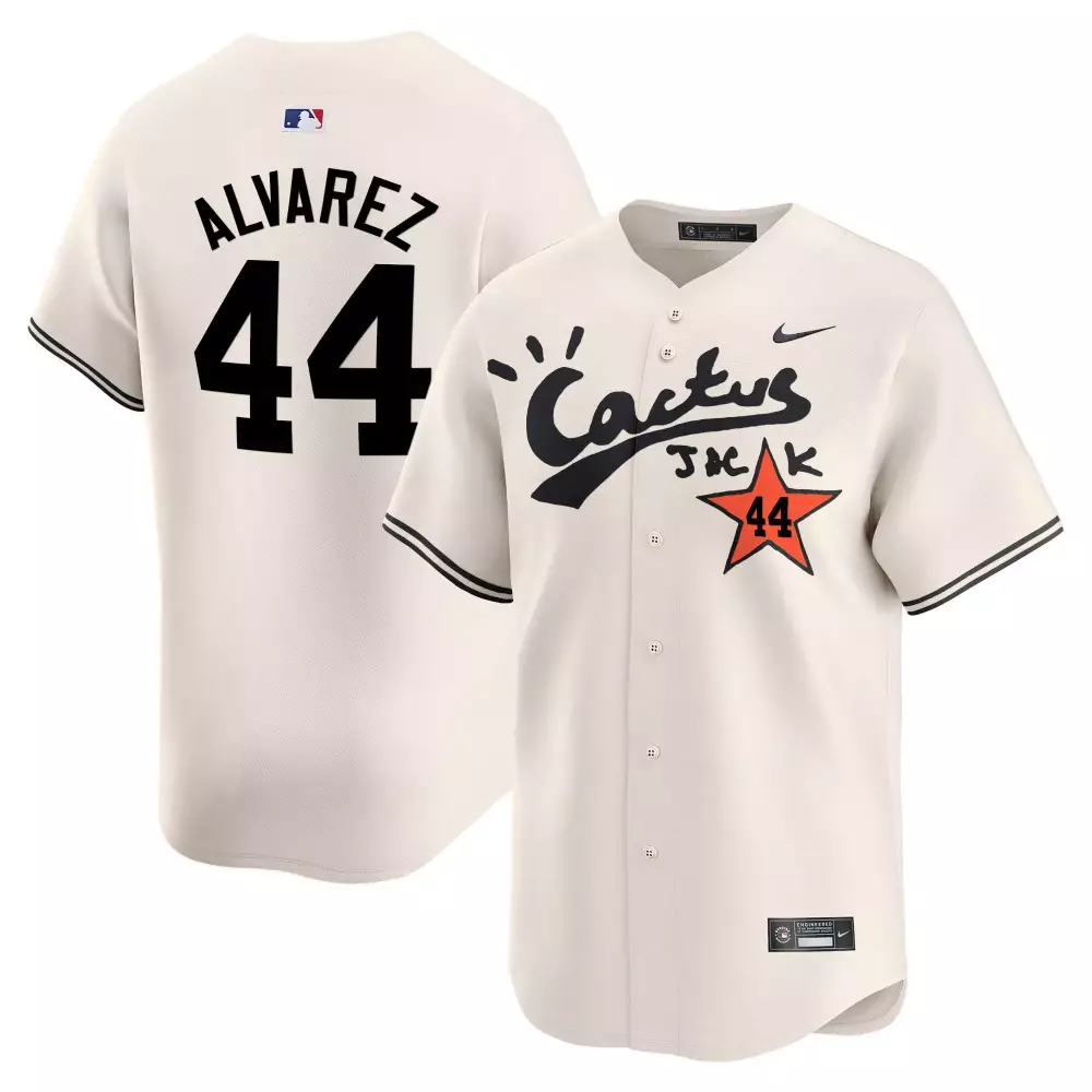 Yordan Alvarez Houston Astros Cream Cactus Jack Style V2 Jersey | Stitched Vapor Premier Limited Edition | Fan Gear for Men, Women & Youth