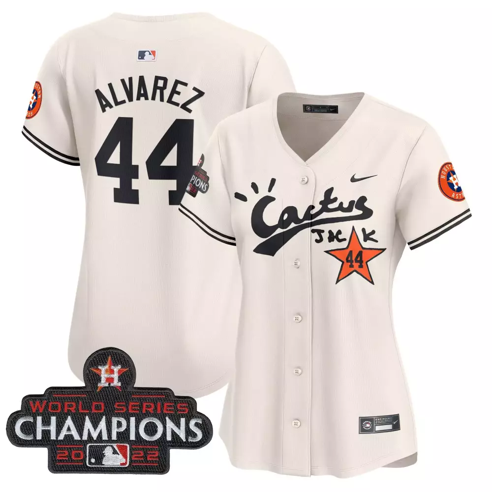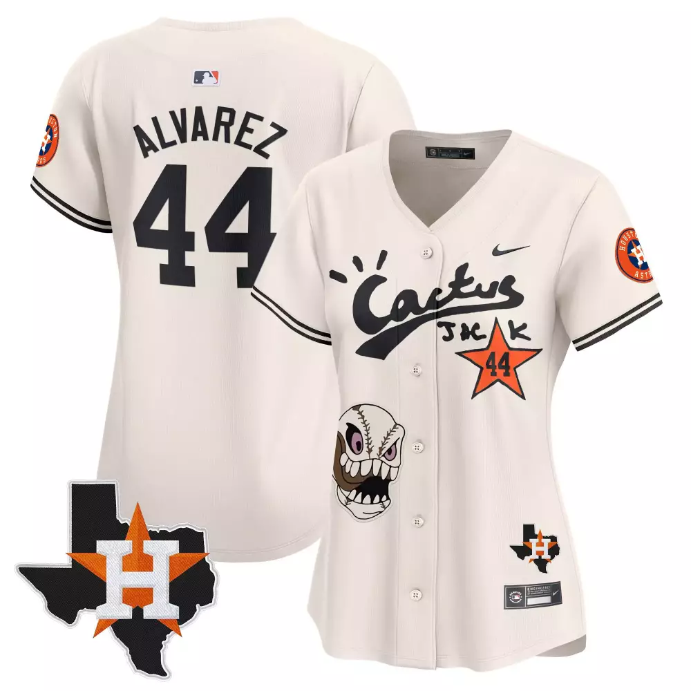 Yordan Alvarez Houston Astros Cream Tupac Shakur Vapor Premier Jersey | Stitched Limited Edition | Fan Gear for Men, Women & Youth;Yordan Alvarez Houston Astros Cream Women’s Cactus Jack Celebrity Softball Game Patch Jersey | Stitched Vapor Premier Limited Edition | Fan Gear for Women;Yordan Alvarez Houston Astros Cream Women’s Cactus Jack Celebrity Softball Game Patch V2 Jersey | Stitched Vapor Premier Limited Edition | Fan Gear for Women;Yordan Alvarez Houston Astros Cream Women’s Cactus Jack Champions Patch Jersey | Stitched Vapor Premier Limited Edition | Fan Gear for Women;Yordan Alvarez Houston Astros Cream Women’s Cactus Jack Patch Jersey | Stitched Vapor Premier Limited Edition | Fan Gear for Women
