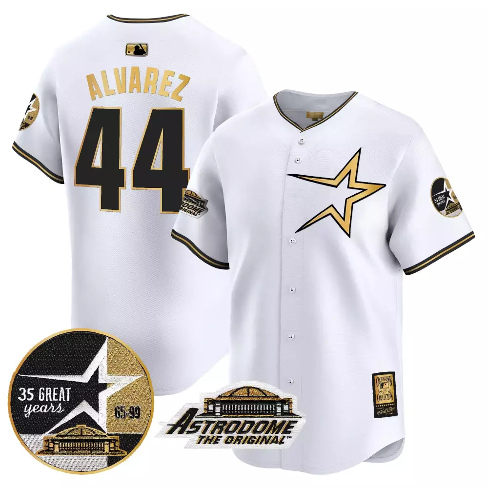 Yordan Alvarez Men’s Houston Astros Houston Rodeo Patch Vapor Premier Jersey V2 | Stitched Limited Edition | Perfect Fan Gear | For Men, Women & Youth;Yordan Alvarez Men’s Houston Astros Jackie Robinson Breaking Barriers Patch Vapor Premier Jersey | Stitched Limited Edition | Fan Gear for All | For Men, Women & Youth;Yordan Alvarez Men’s Houston Astros Space City Houston Rodeo Patch Vapor Premier Jersey | Stitched Limited Edition | Perfect Fan Gear | For Men, Women & Youth;Yordan Alvarez Men’s White Gold Houston Astros 1999 Throwback Jersey | Stitched Vapor Premier Limited Edition | Fan Gear for Men, Women & Youth;Yordan Alvarez Men’s White Gold Houston Astros 1999 Throwback Jersey V2 | Stitched Vapor Premier Limited Edition | Fan Gear for Men, Women & Youth