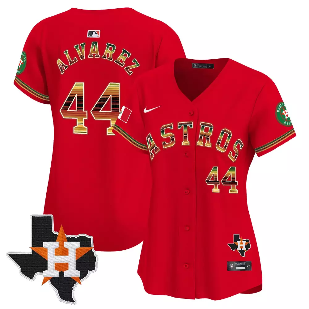 Yordan Alvarez Red Women’s Houston Astros Mexico Texas Patch Vapor Premier Limited Jersey | All Stitched Fan Gear | For Men, Women & Youth