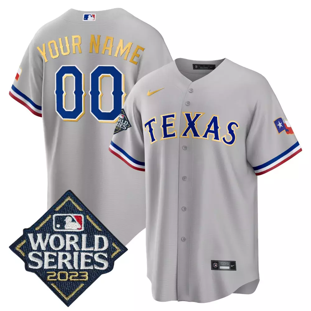 Youth Texas Rangers 2023 World Series Champions Patch Jersey | Royal Blue Custom Stitched | Game Day Outfit | For Men, Women & Youth;Youth Texas Rangers 2023 World Series Gray Jersey | Cool Base Gold Trim | Stitched Fan Gear for Men, Women & Youth;Youth Texas Rangers 2023 World Series Gray Jersey | Flex Base Gold Trim | Stitched Fan Gear for Men, Women & Youth;Youth Texas Rangers 2023 World Series Gray Jersey V2 | Cool Base Gold Trim | Stitched Fan Gear for Men, Women & Youth;Youth Texas Rangers 2023 World Series Gray Jersey V2 | Flex Base Gold Trim | Stitched Fan Gear for Men, Women & Youth